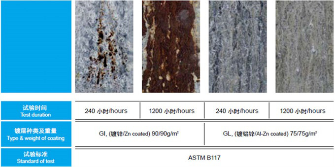 2.抗高溫氧化: 鍍鋁鋅鋼板在315攝氏度的高溫環境下持久使用也不會發生任何變色或變形。