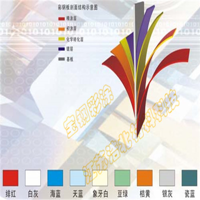 簡介 聚酯彩板是使用PE聚酯涂料裝在金屬板上,再經(jīng)高溫烘烤做成的金屬烤漆彩板