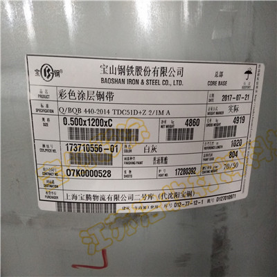 2、 索要寶鋼彩涂產品質量證明書,質保書中鋼卷號,爐號,凈重,鋅層含量與彩涂卷標簽對應,且仔細核對標簽清晰度,看是否有撕毀過痕跡,包括鋼卷內標簽。