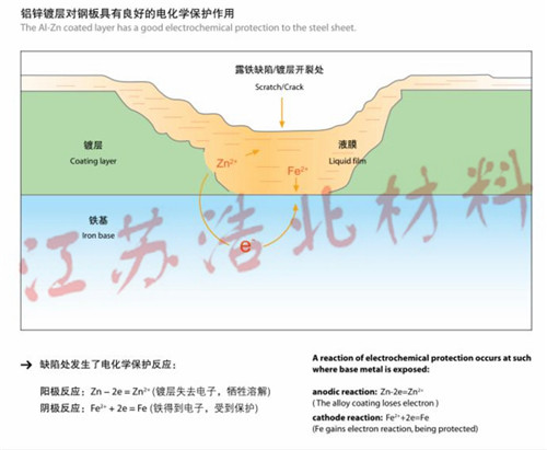 敷鋁鋅表面呈特有的光滑、平坦和華麗的星花,基色為銀白色。特殊的鍍層結(jié)構(gòu)使其具有優(yōu)良的耐腐蝕性。